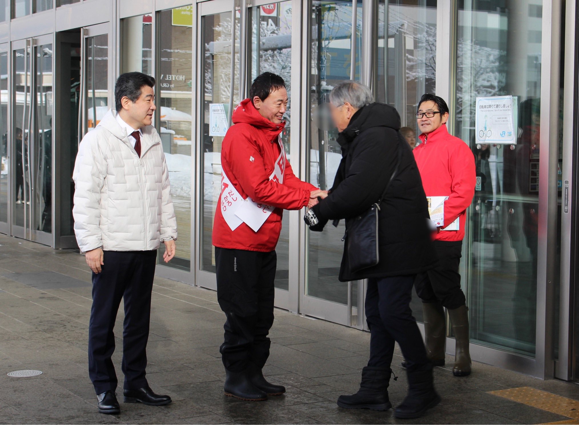 選挙戦も終盤戦へ2026年02月03日 真冬の選挙戦も終盤戦となって参りました。本日は、古屋圭司選挙対策委員長が来県されました。 富山1区・中田宏候補、富山2区・上田英俊候補、富山3区・橘慶一郎候補の必勝に向け、ぜひ期日前投票をお願い申し上げます。